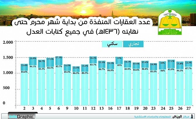 عكس المؤشر العقاري التوقعات بتراجع التداولات العقارية بعد بدء تطبيق التنظيم الجديد للتمويل العقاري (16/1/1436ه) الذي يشترط دفع 30% مقدم الحصول على تمويل شراء المسكن أو الأرض.. محققاً تداولات مستقرة خلال الأسبوع الرابع في شهر محرم (الأحد 23/1/1436ه).. وحتى نهايته بإجمالي تداولات بلغت أكثر من 6 مليارات ريال في جميع مدن المملكة في القطاع السكني، منها 1.7 مليار ريال في الرياض، وبلغ إجمالي التداولات في (الأسبوع الأخير) وبعد تطبيق التنظيم 8.4 مليارات ريال، منها 2.3 مليار ريال في القطاع التجاري، في عموم مناطق المملكة.